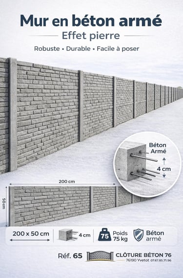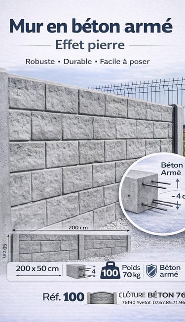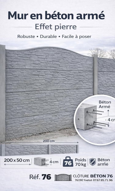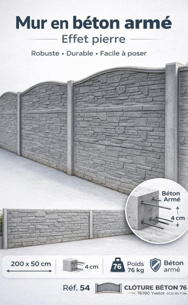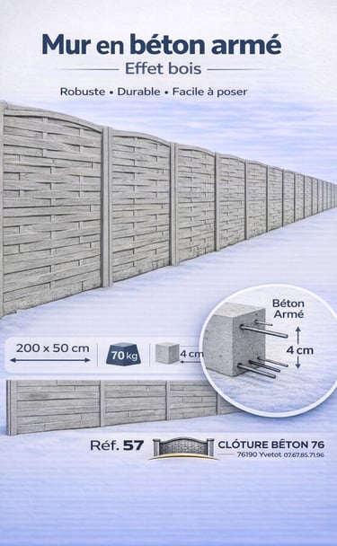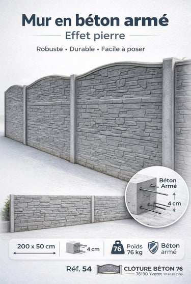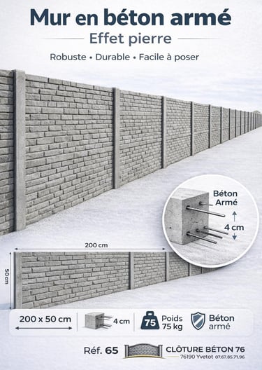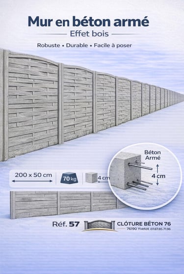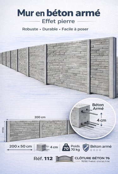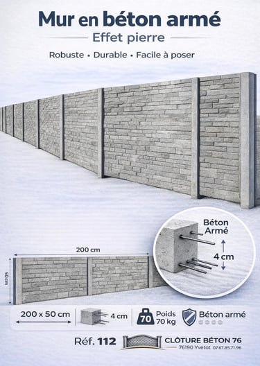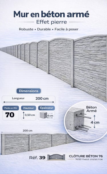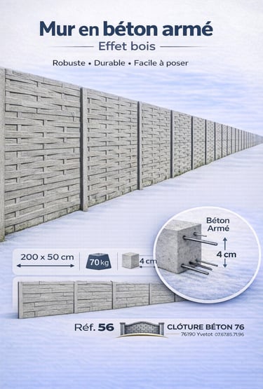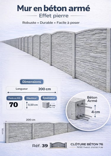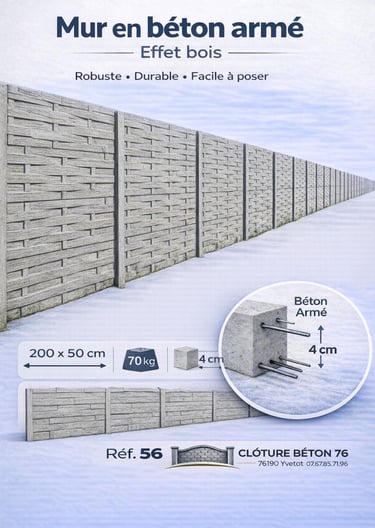 Choisir une clôture béton décorative, c’est opter pour une solution durable, sécurisante et esthétique. Grâce à ses multiples finitions, elle s’adapte à vos envies et apporte une réelle valeur ajoutée à votre maison.
