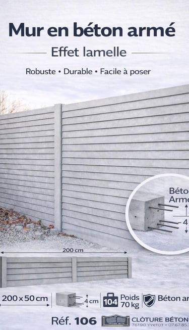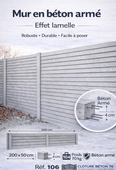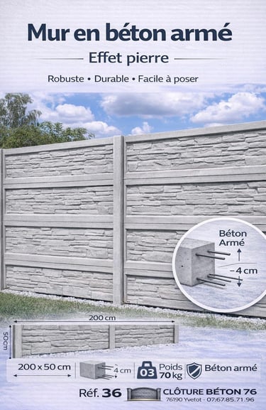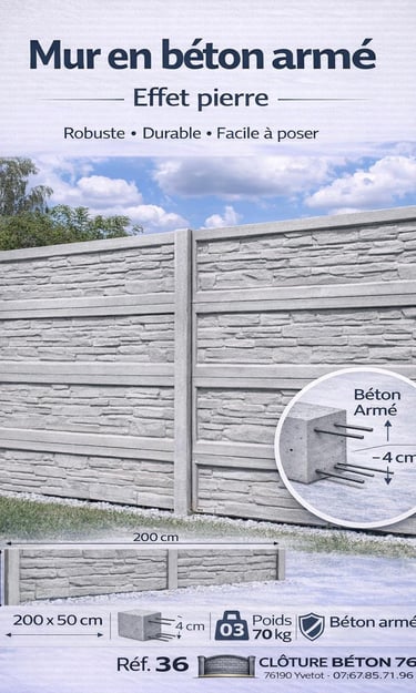 Vous recherchez une solution solide et esthétique pour protéger votre jardin tout en valorisant votre extérieur ? La clôture béton est une réponse idéale. Résistante, durable et sans entretien, elle conjugue sécurité, intimité et design pour transformer vos espaces extérieurs en lieux accueillants et élégants. Parcourez notre gamme et trouvez la clôture béton parfaite pour votre jardin.