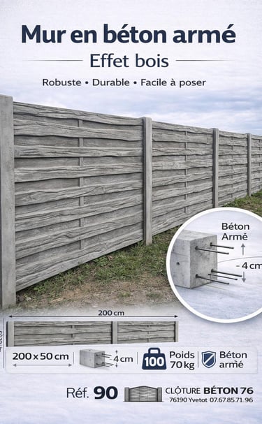 Avec leur rendu chaleureux et naturel, les modèles de clôture imitation bois s’intègrent parfaitement dans un environnement paysager, tout en conservant les avantages du béton. Elles permettent de recréer l’ambiance authentique du bois sans les contraintes d’entretien.