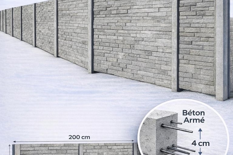 Une clôture béton pour jardin est conçue pour durer. Insensible aux intempéries, elle ne craint ni la pluie, ni le gel, ni le soleil. Contrairement à une clôture bois ou métal, elle ne se déforme pas et conserve son aspect d’origine au fil des années. Associée à des poteaux béton solides, elle forme un ensemble robuste et harmonieux. Investir dans une palissade béton, c’est choisir une solution pérenne qui protège efficacement votre propriété.